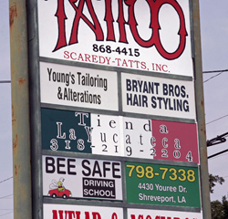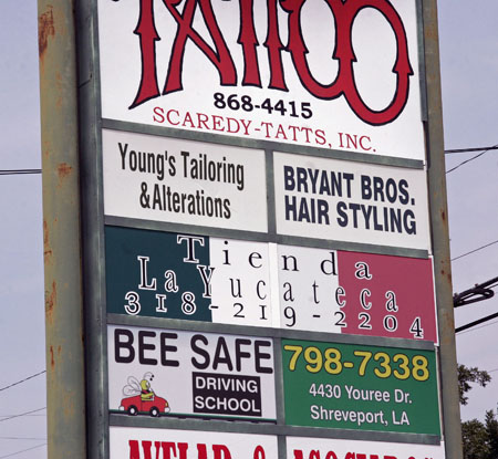 Signs of Shreveport-Bossier City's growing Latino community: Tienda La Yucateca in Shreveport. La Yucateca's Latino customers hail from Honduras, Guatemala, El Salvador, Mexico, Nicaragua, Colombia, Puerto Rico, and Bolivia. Photo: Laura Marcus Green.
