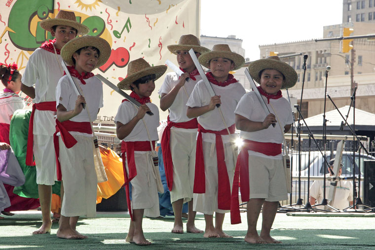 Dancing in the heart of downtown Shreveport's Festival Plaza made the children feel like stars. The students' pride fuels Maria's dedication to working with the youth. She feels that dancing ballet folklorico boosts their self-esteem. She observes, "They see themselves as [having] something valuable to offer to their community. So it's important to teach them some artistic inclinations and to value where they come from. You never know how far they might go-it could open doors for the children."