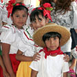 Part of the folklorico tradition is learning and teaching dances from different regions of Mexico. In selecting a dance for the fiesta, Maria had many possibilities from which to choose. She observes, "There are so many wonderful dances, so full of emotion-well, the dances themselves are like that, very expressive. And some of them tell legends, some of them tell love stories . . . you name it." For Cinco de Mayo, the students, who ranged in age from pre-K to fifth grade, learned a dance originating in Maria's home state of Chiapas, El Jabalí [ha-la-BEE] (The Wild Boar). The story and dance originate with the Zoque, an indigenous group from the Chiapas area. The traditional dances of the Zoque are widely represented in the ballet folklorico repertoire of Chiapas.