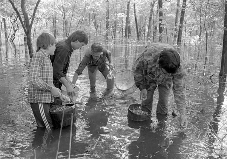 The wilds also furnish a variety of berries and fruits which are a valued part of the north central Louisiana diet. These include black berries, dew berries, elder berries, choke berries, muscadines, scuppernongs, and mayhaws (Figure 10). Gathering or picking these fruits is often considered an important seasonal family endeavor also, with both husbands and wives taking part.
