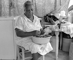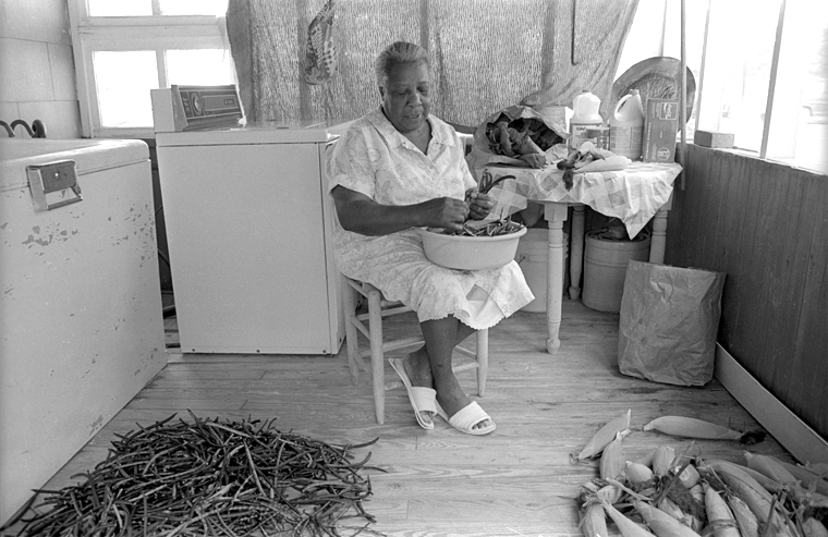 For special occasions such as Sunday dinner, fried chicken, chicken-fried steak, or pork chops might be added to the above menu, and other types of beans (string, pinto, pole), or peas (speckled, black-eyed, cream, lady, or English) served with homemade tomato sauce, chow-chow and/or cucumber or peach pickles, and corn (cream style or corn on the cob) could be included. Often raised in home garden plots, these foods and other vegetables in various combinations are common today in rural white and black families and in urban ones if vegetables are available. These may be served throughout the year now with the aid of home freezers and traditional canning. Freezing, and to a lesser extent, canning, preserving, and drying out of vegetables and fruits are domestic chores still widely practiced by women such as Sarah Albritton and Maxine Otwell, in the summer in rural and small towns in North Louisiana.