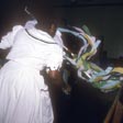 The Easter Rock is a tradition that we perform in Winnsboro, Louisiana at the original True Life Baptist Church located on Highway 4 in Winnsboro. It is done the Saturday before Easter. It is a circular dance that we do in the black church; it's a rhythmic rock from side-to-side as the caller is singing a song talking about "Oh David." The song "Oh David" is a victory song, it tells the story of David and Goliath, when David went out on the battle field and slew the mighty giant Goliath. He was victorious in that battle and that is why we use the song "Oh David" because Jesus we know he was victorious over the grave for he died and he rose again. Here this afternoon, well this evening, what you will see will be a table that is dressed in white and on the table you will notice that there will be 12 cakes placed on the table which represents the 12 disciples. And you will notice that there will be 12 lanterns which represent the 12 tribes of Israel, you will also notice that there will be some punch placed on the table, some red punch, which symbolized the blood of Jesus. Before the punch was introduced into the scene they had real wine that they would drink after the Easter Rock but now we use regular punch of the color red to symbolize the blood of Jesus. Also on the table you will see the basket which represents the grave, the eggs which represents the breaking of the grave when Jesus rose on the third day morning. You will also notice we are dressed in white which symbolizes purity. You will notice that there will be a banner carried by the first person that is leading the rock. That person is carrying the banner as Jesus carried the cross. The banner is in a circular diagonal form and the reason for is there is no ending to a circle and it represents Jesus' life because there is no ending to Jesus for we know that he lives now and forever more. (2001)